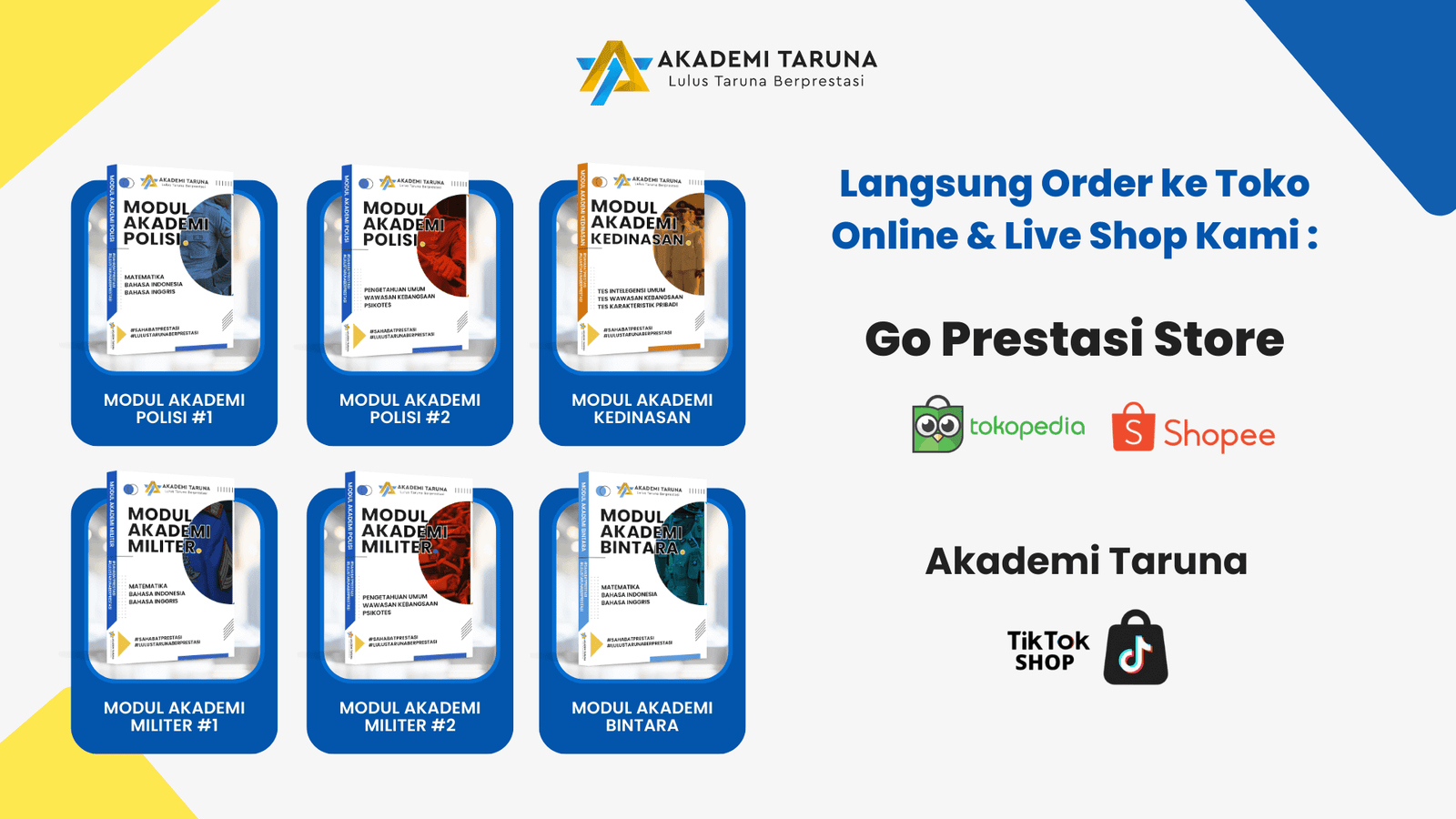 Karena segala kebutuhan kamu untuk persiapan menghadapi ujian AKPOL, AKMIL, BINTARA dan SEKOLAH KEDINASAN, ada di buku exclusive dari Akademi Taruna.